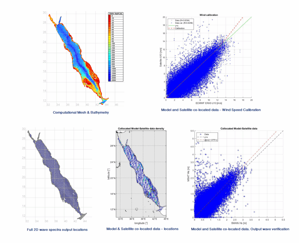 The Red Sea is a very enclosed basin where global and regional models do not have enough spatial resolution to reproduce the marine climate accurately. Therefore regional wave, level and current hindcasts have been developed in-house, using 2D Hydrodynamic and Spectral Wave numerical models, to create high resolution hindcasts in the area for the period 1-January 1995 to 31-Dec-2024.